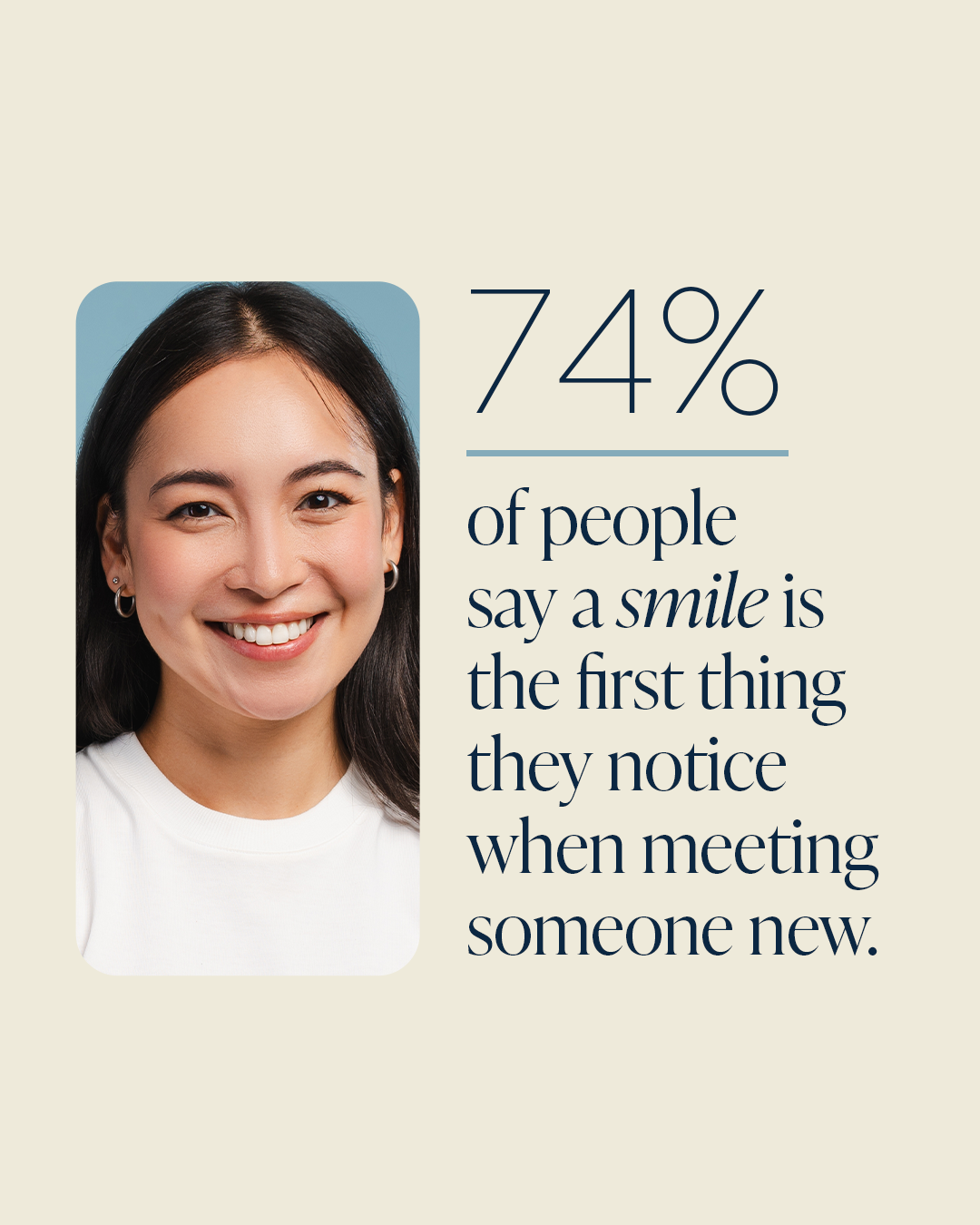 74% of people say a smile is the #1 thing they notice when meeting someone new.